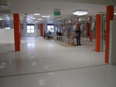 Ableitfähige Bodenbeschichtung in einer Laserfertigung
